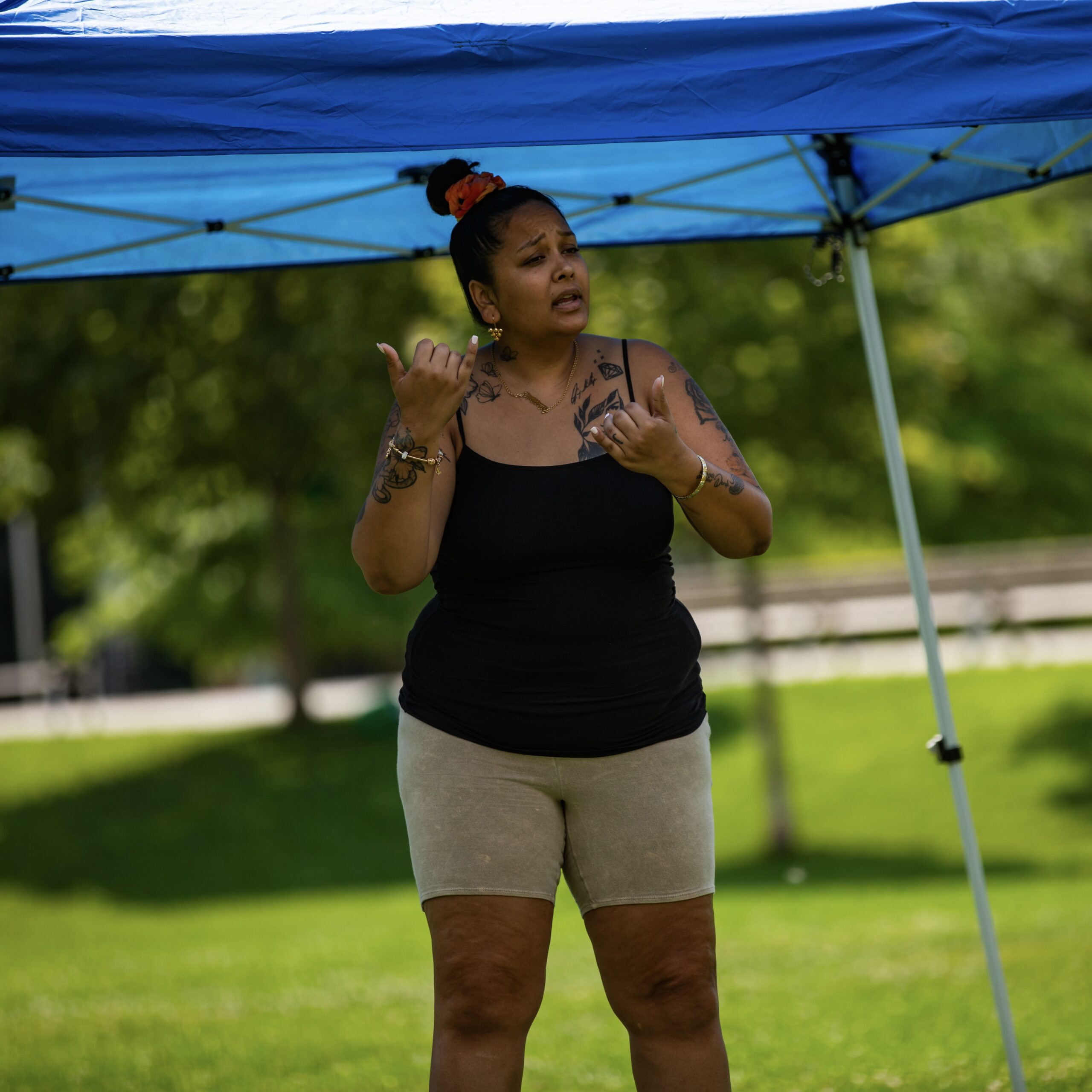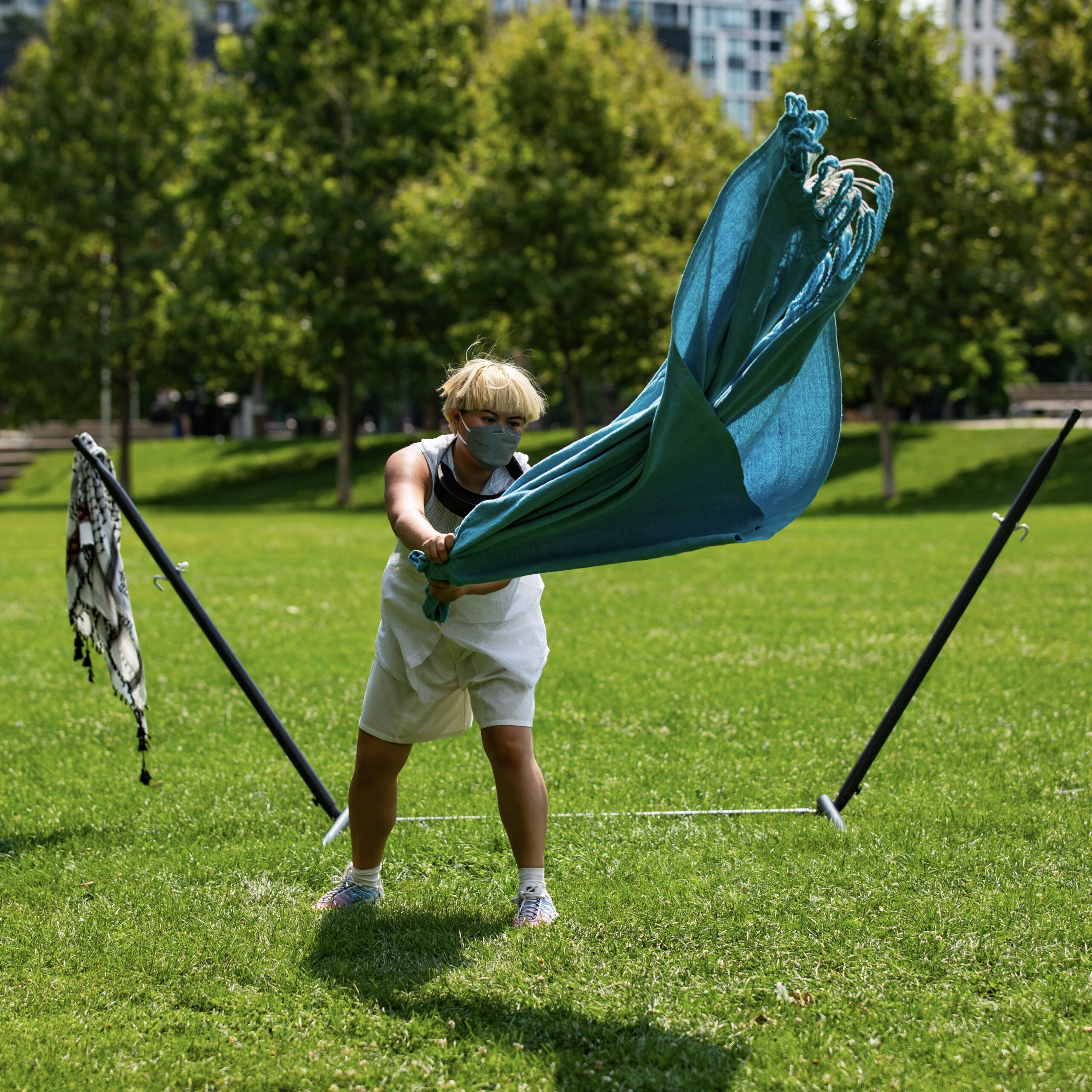 As we move in step with grief, we dance in relationship with the medical, with aesthetic, with public space, with improvisations of sonic accompaniment, and with global movements for collective liberation. Wheezy Breezy rides along the winds that are already blowing through Regent Park, in recognition of the power of being in community and communion with others. Regent Park has a long and deeply respected reputation of pushing back on gentrification, speaking up for the land and the decades of communities already living here, as forces attempt to claim it away, seeing it more valuable in its proximity to downtown core, which concrete and money has been making unliveable for many.